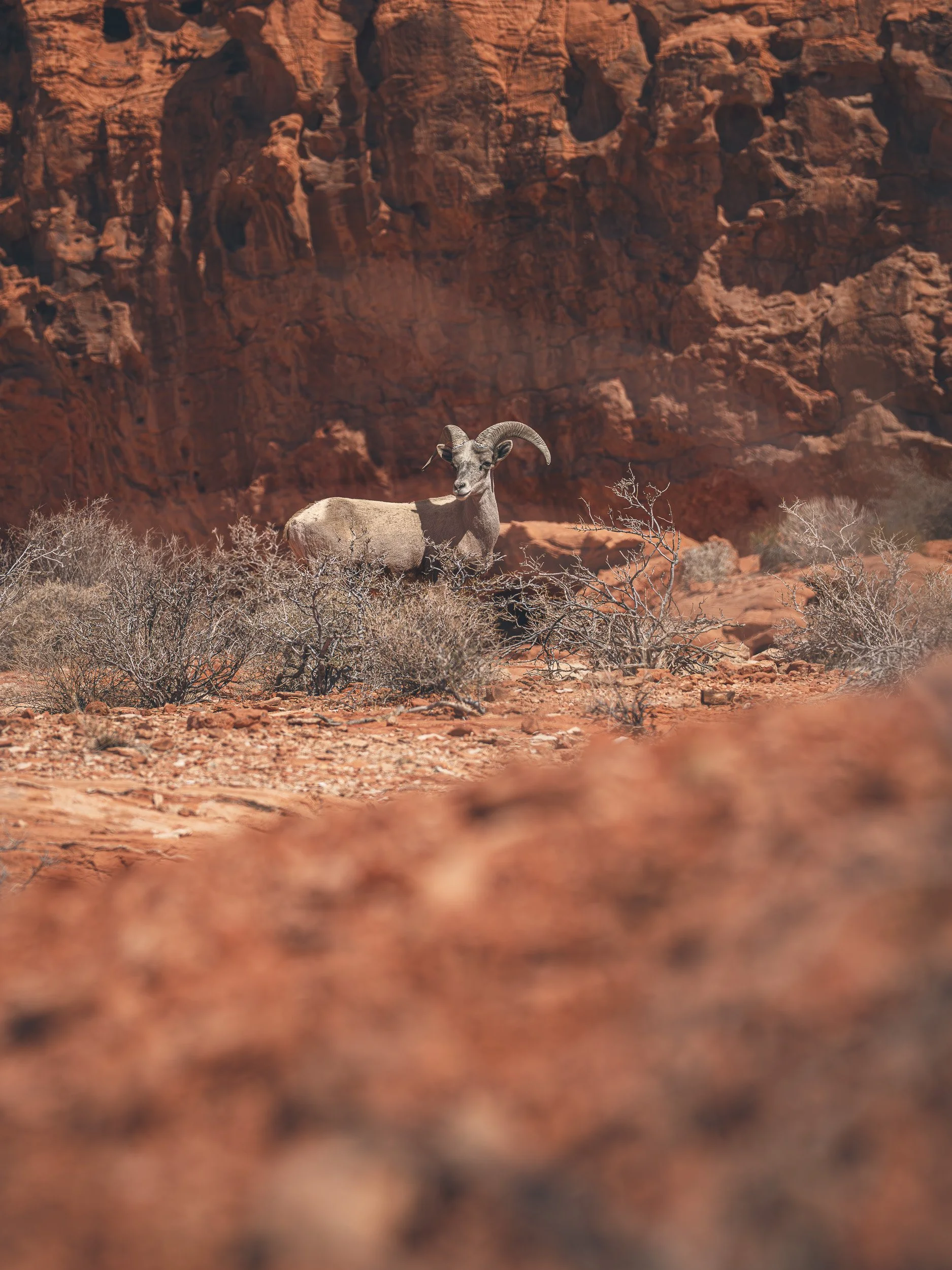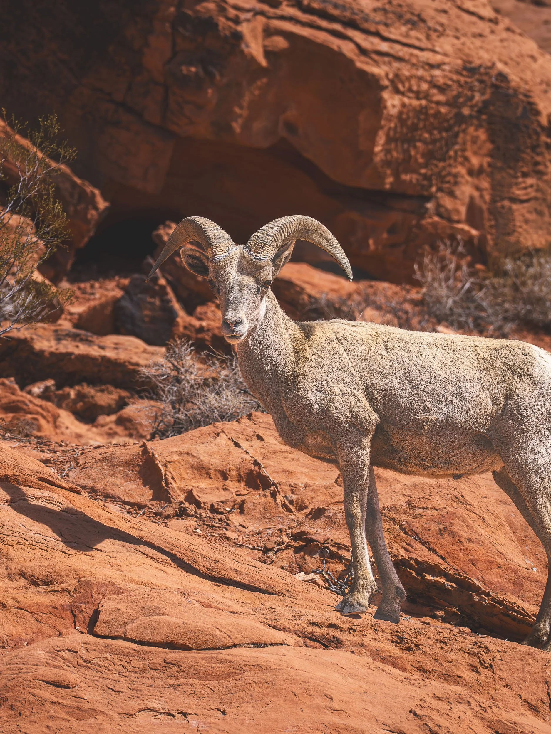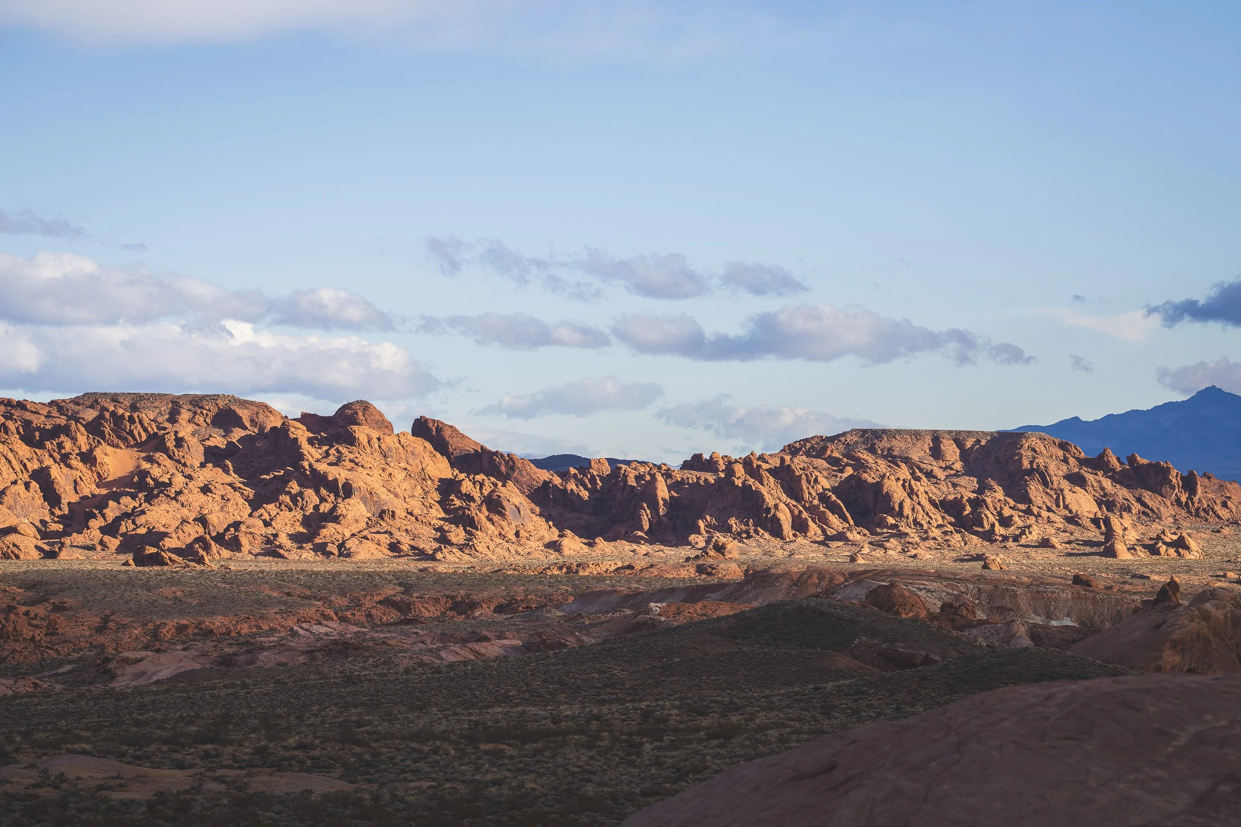 Within an hour, the city gives way to open desert — to red sandstone formations rising in every direction. Valley of Fire State Park feels quiet, expansive, and far removed from the Strip.